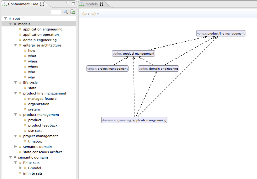 The semantic approach allows the semantic identity “customer” to be used in a database model, in models of various user interfaces, as well as in various algorithms. In a semantic model a change in the name of the semantic identity from “customer” to “client” has no impact on the models that reference the semantic identity. The distinction between naming and modelling also allow a single semantic identity to be associated with several names that relate to different view points in the organisation.